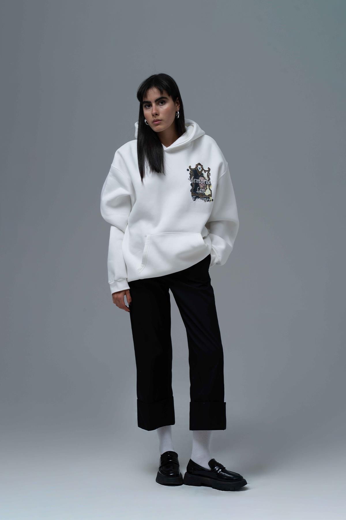 Şardonlu Üç İplik Kumaştan Üretilmiştir. Özel Baskı Detaylıdır. Kumaş İçeriği: %75 Pamuk %25 Polyester Kanguru cepli ve kapüşonlu oversize hoodie.
