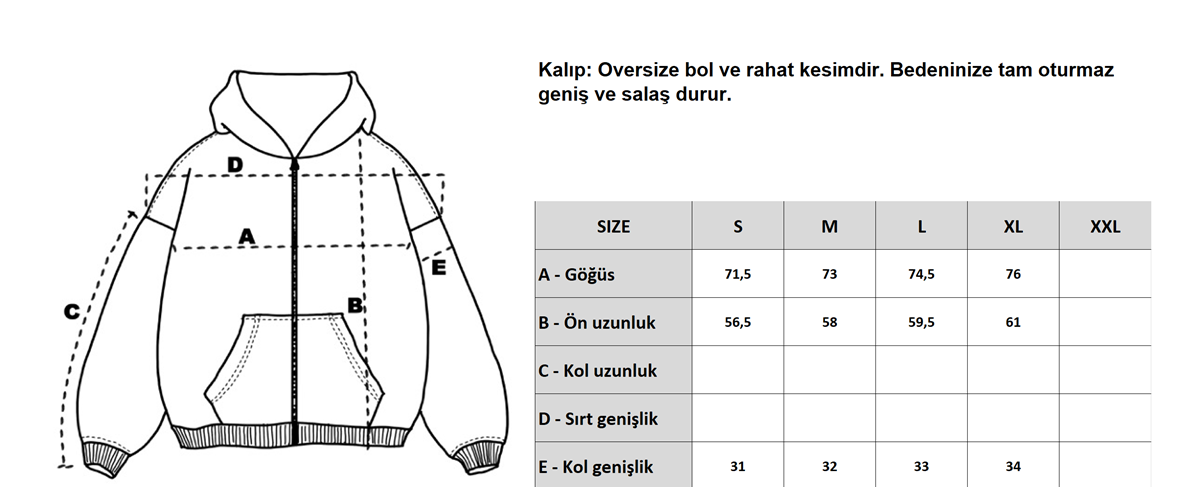 %100 Polyester Kanguru cepli ve kapüşonlu oversize hoodie.