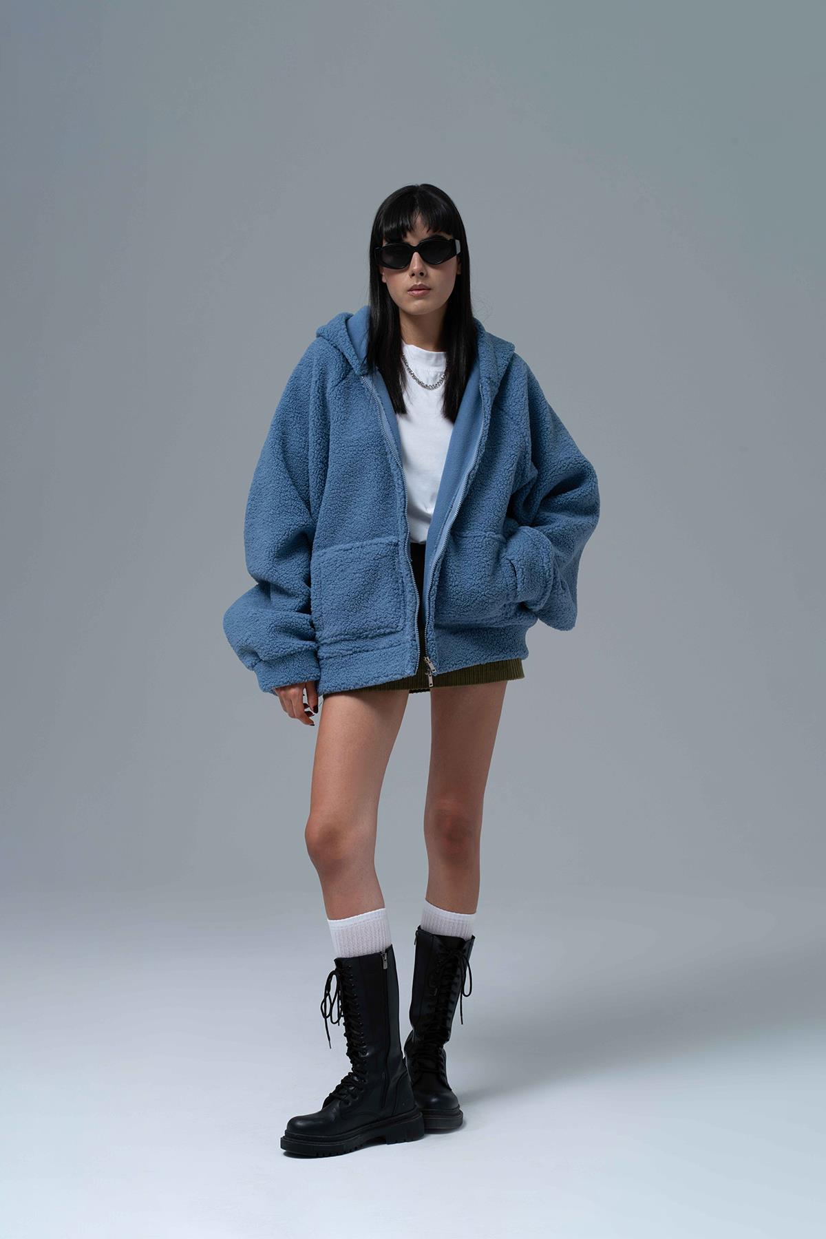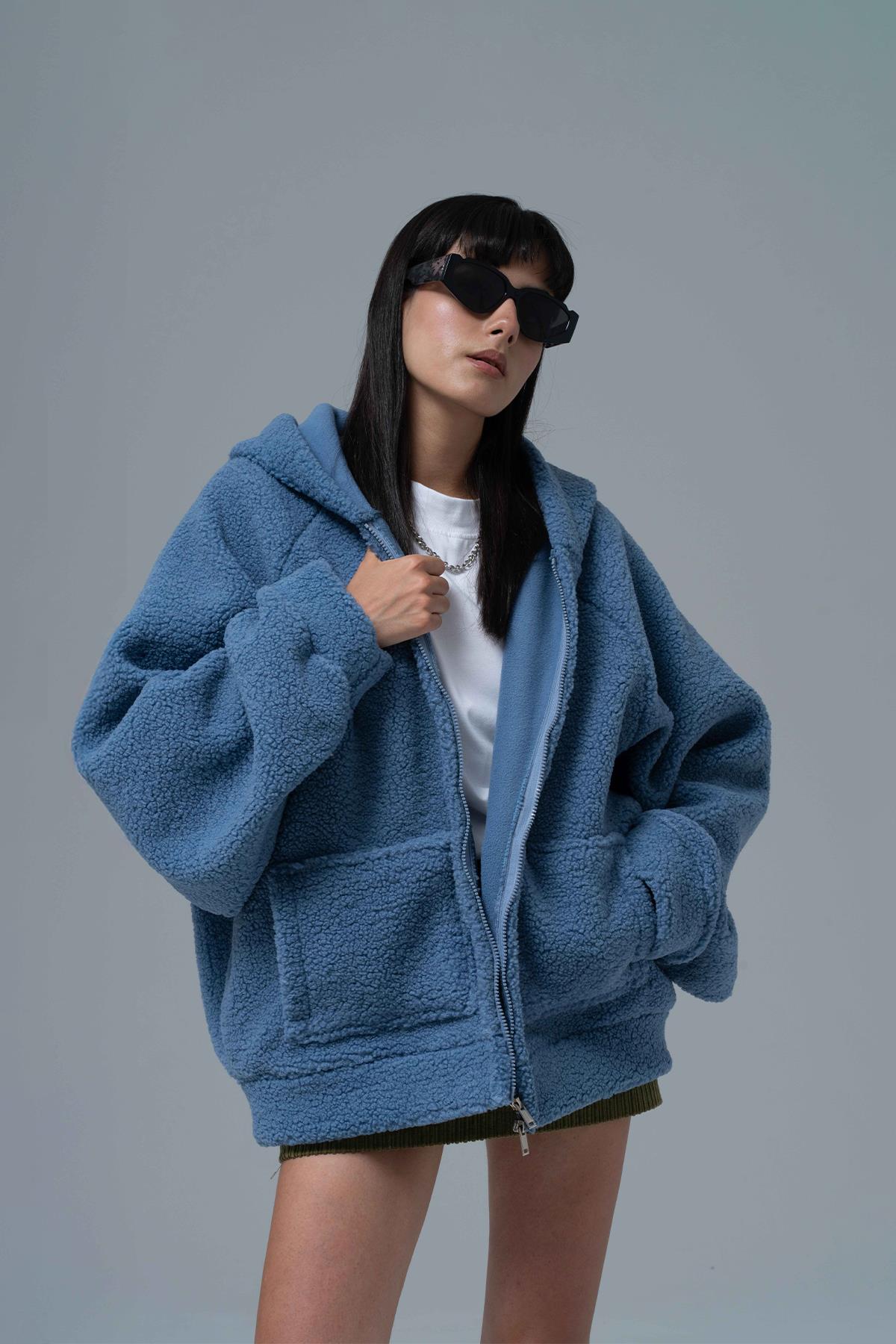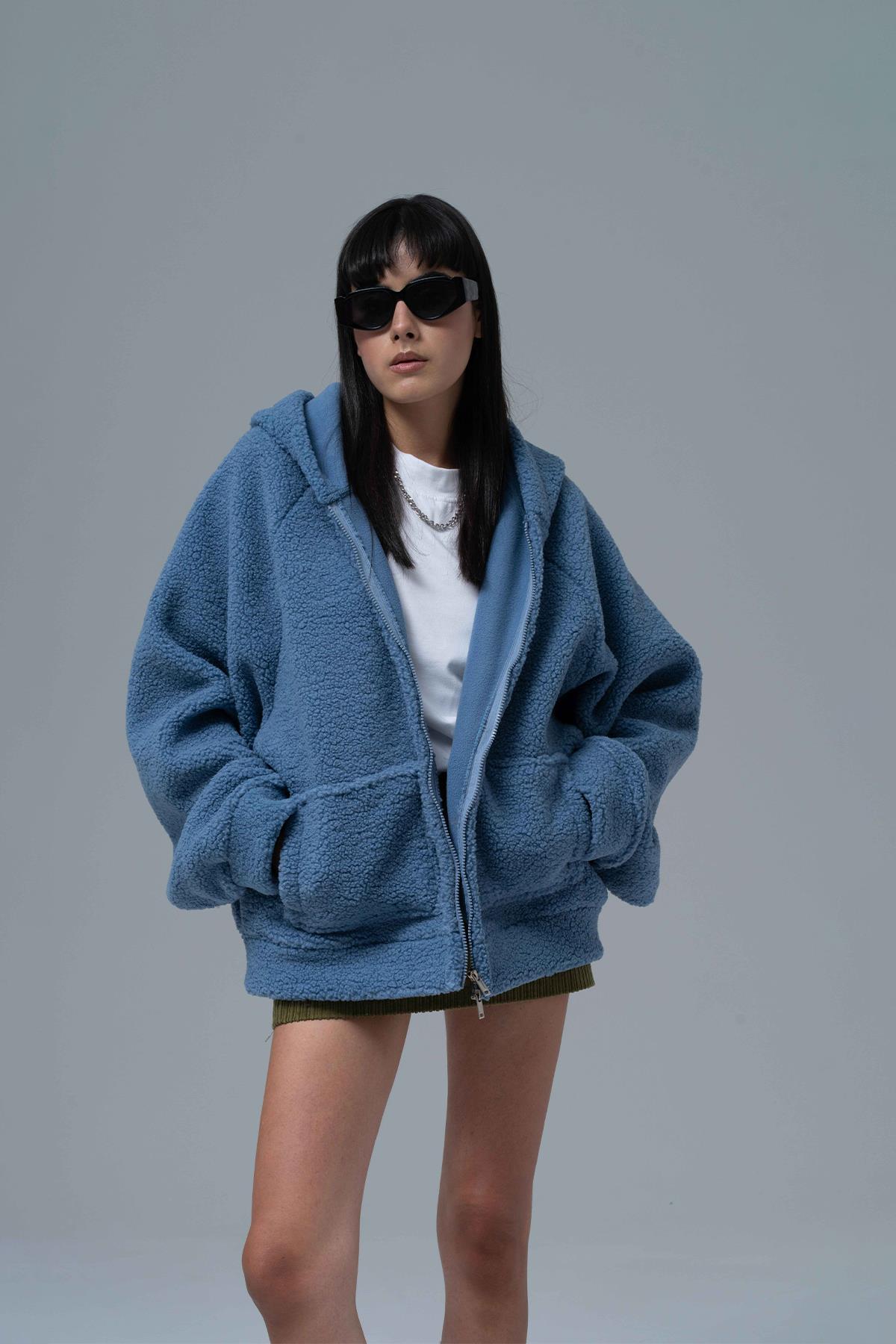 %100 Polyester Kanguru cepli ve kapüşonlu oversize hoodie.