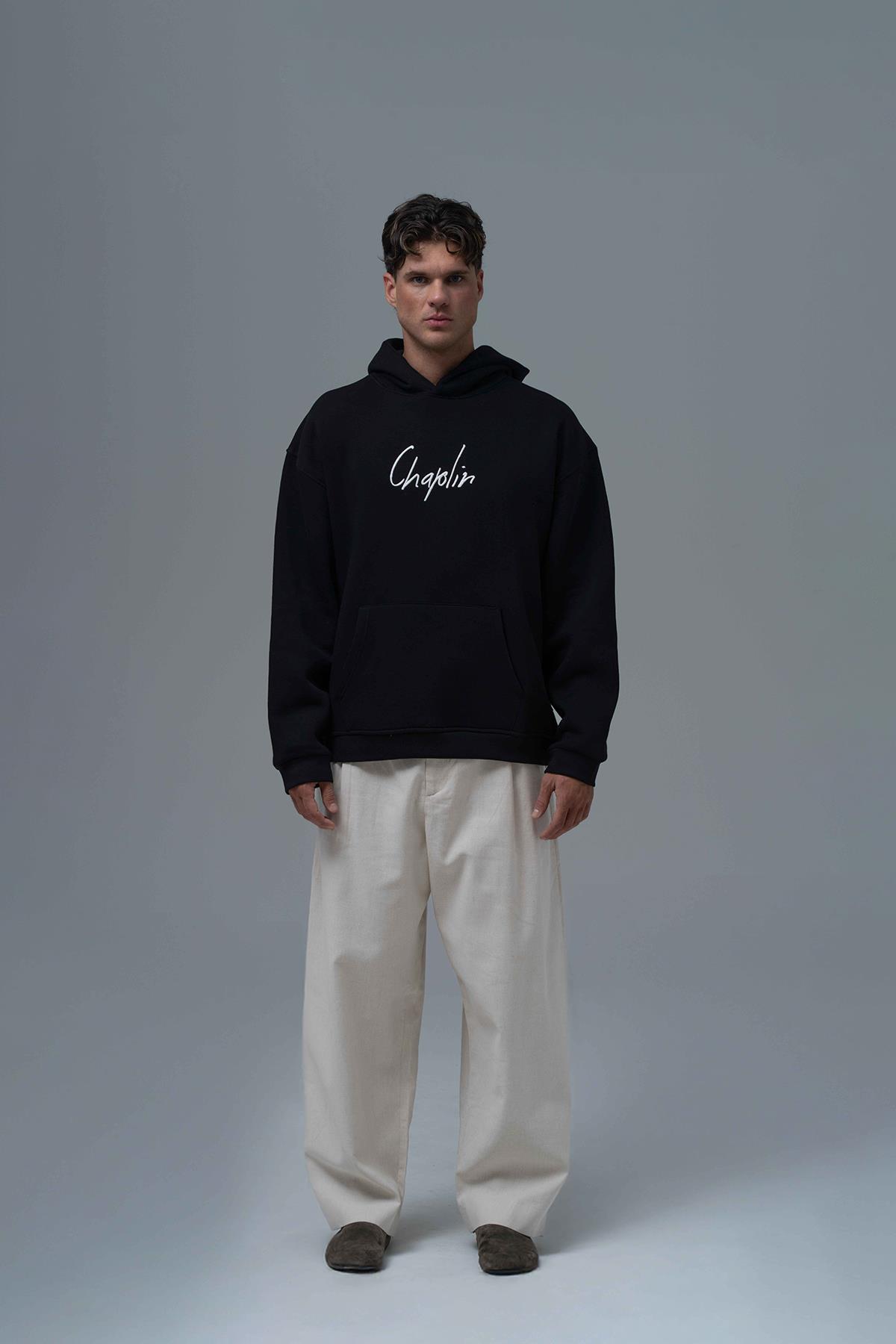 Şardonlu Üç İplik Kumaştan Üretilmiştir. Nakış ve Özel Baskı Detaylıdır. Kumaş İçeriği: %75 Pamuk %25 Polyester Kanguru cepli ve kapüşonlu oversize hoodie.