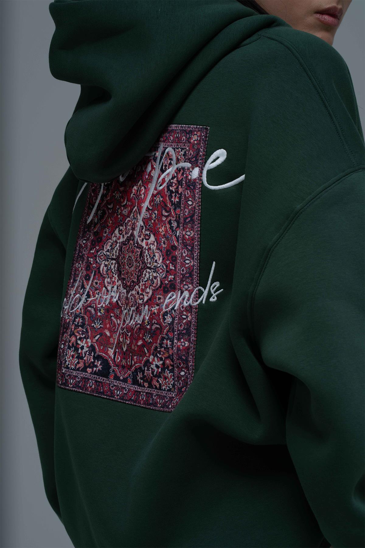 Şardonlu Üç İplik Kumaştan Üretilmiştir. Özel Teknik Nakış Detaylıdır. Kumaş İçeriği: %75 Pamuk %25 Polyester Kanguru cepli ve kapüşonlu oversize hoodie.