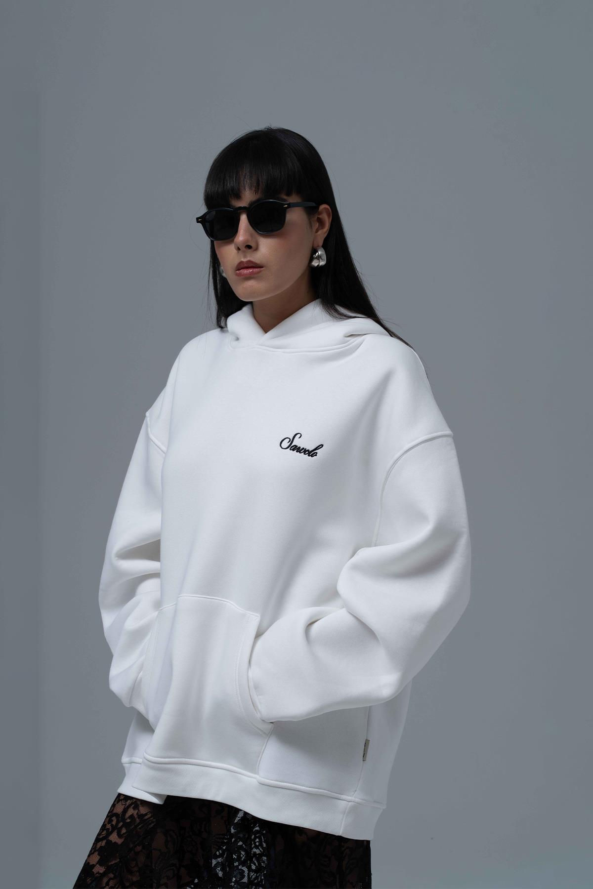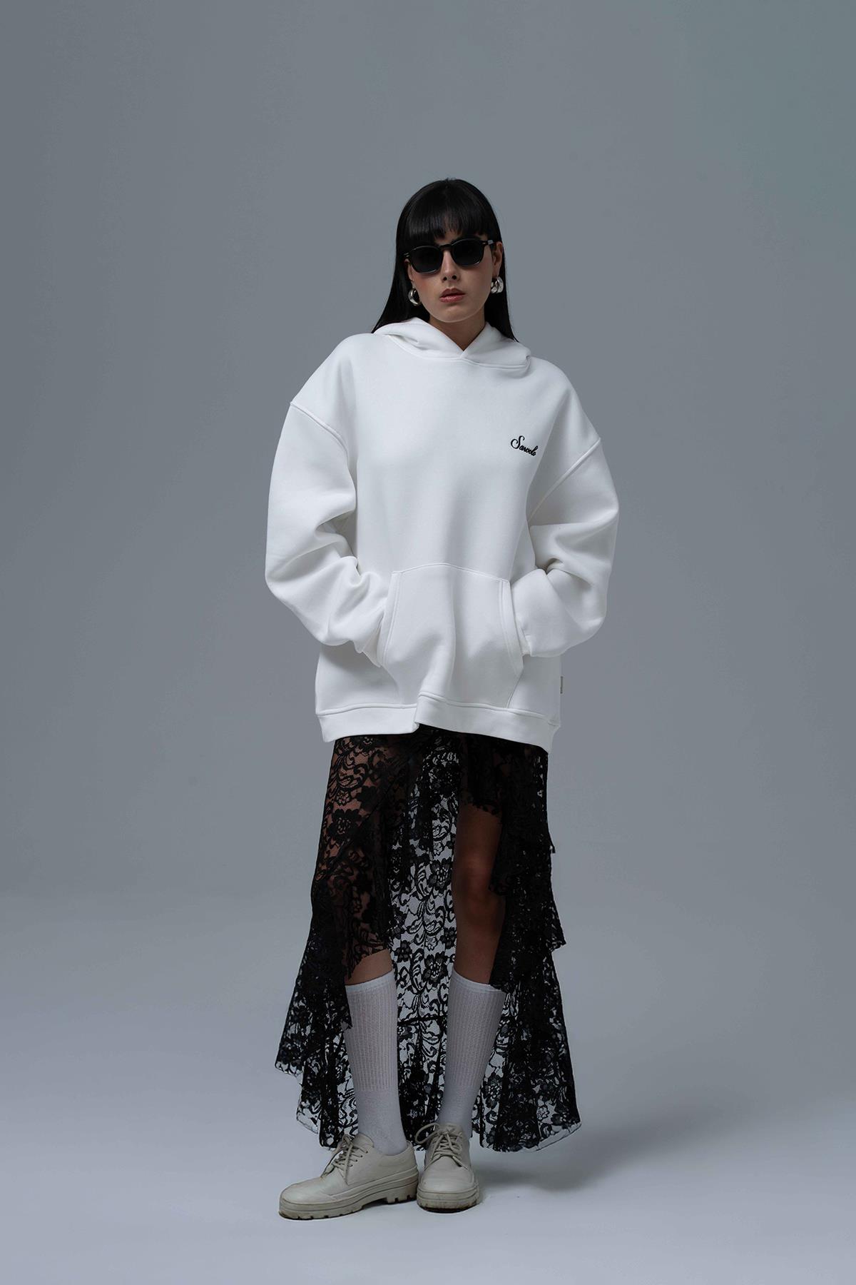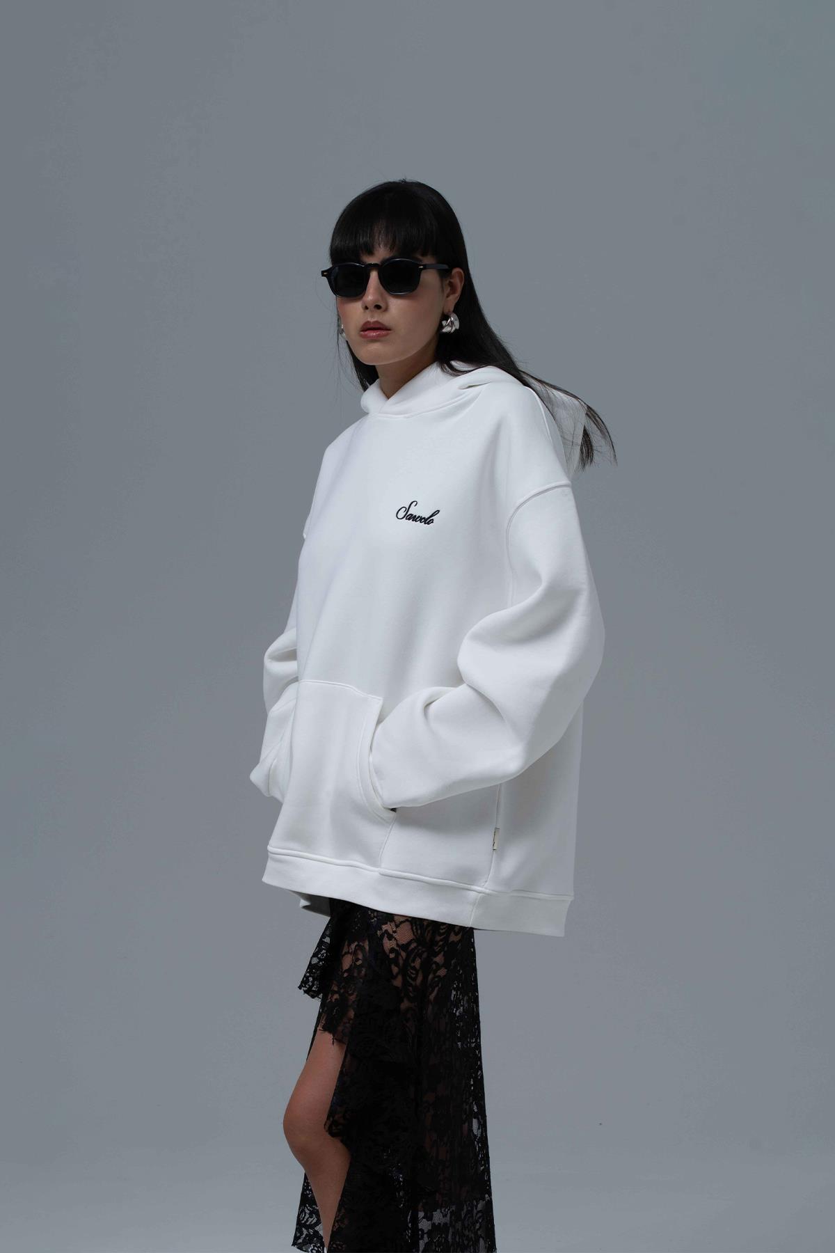 Şardonlu Üç İplik Kumaştan Üretilmiştir. Nakış & Petek Aplike,Özel Baskı Detaylıdır. Kumaş İçeriği: %75 Pamuk %25 Polyester Kanguru cepli ve kapüşonlu oversize hoodie.