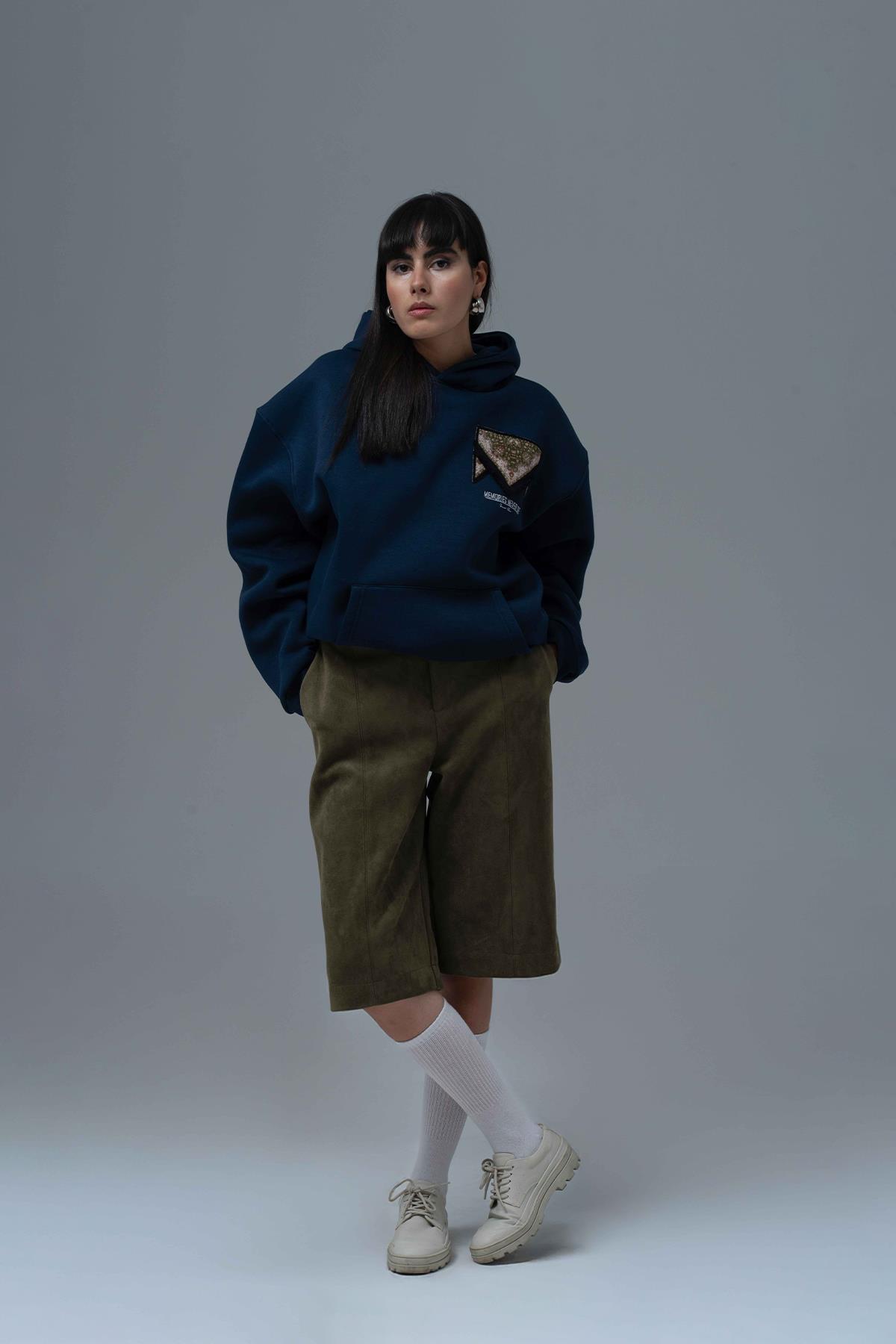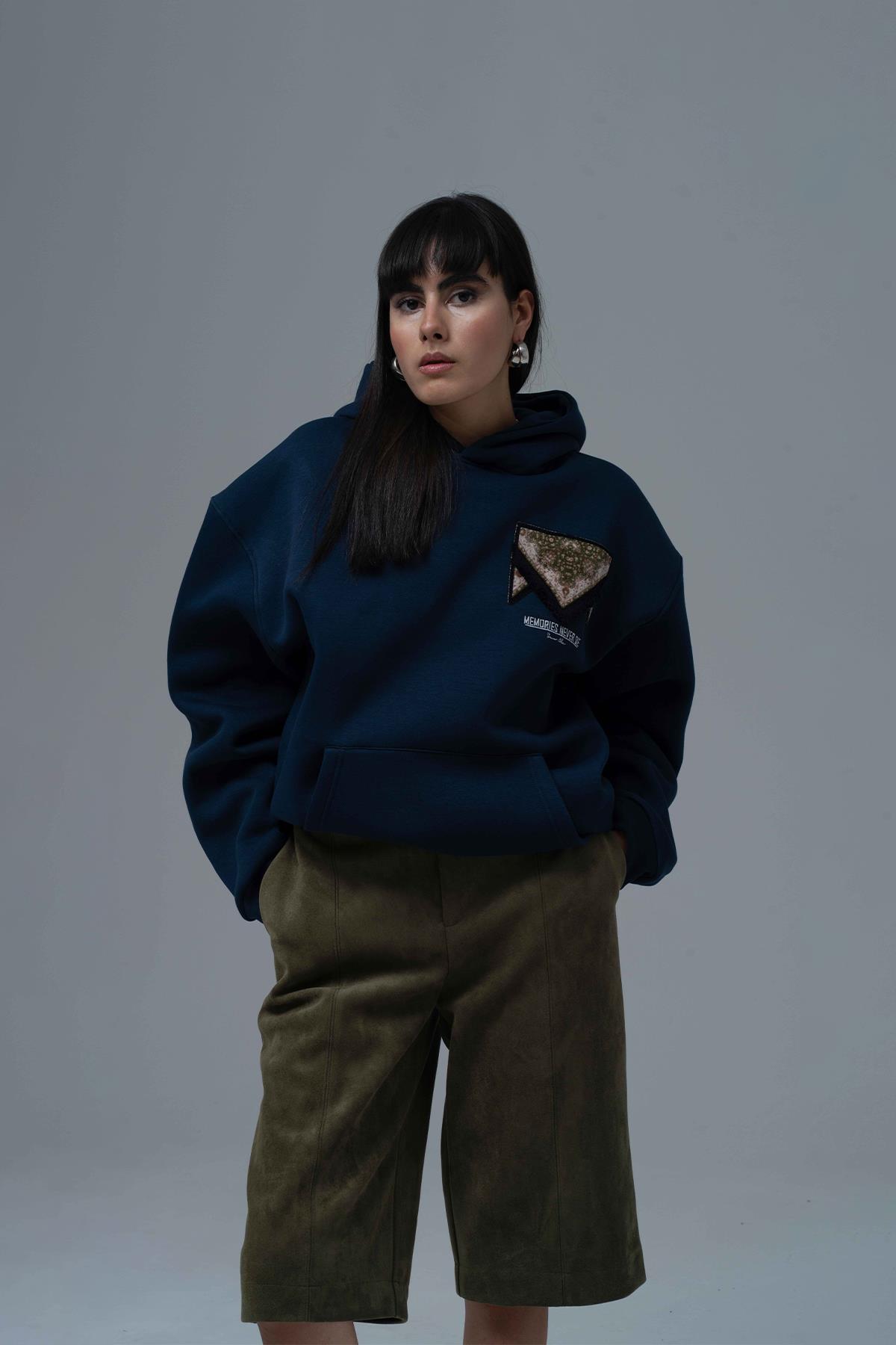 Memories Never Die Oversize Sweatshirt Kadın İndigo