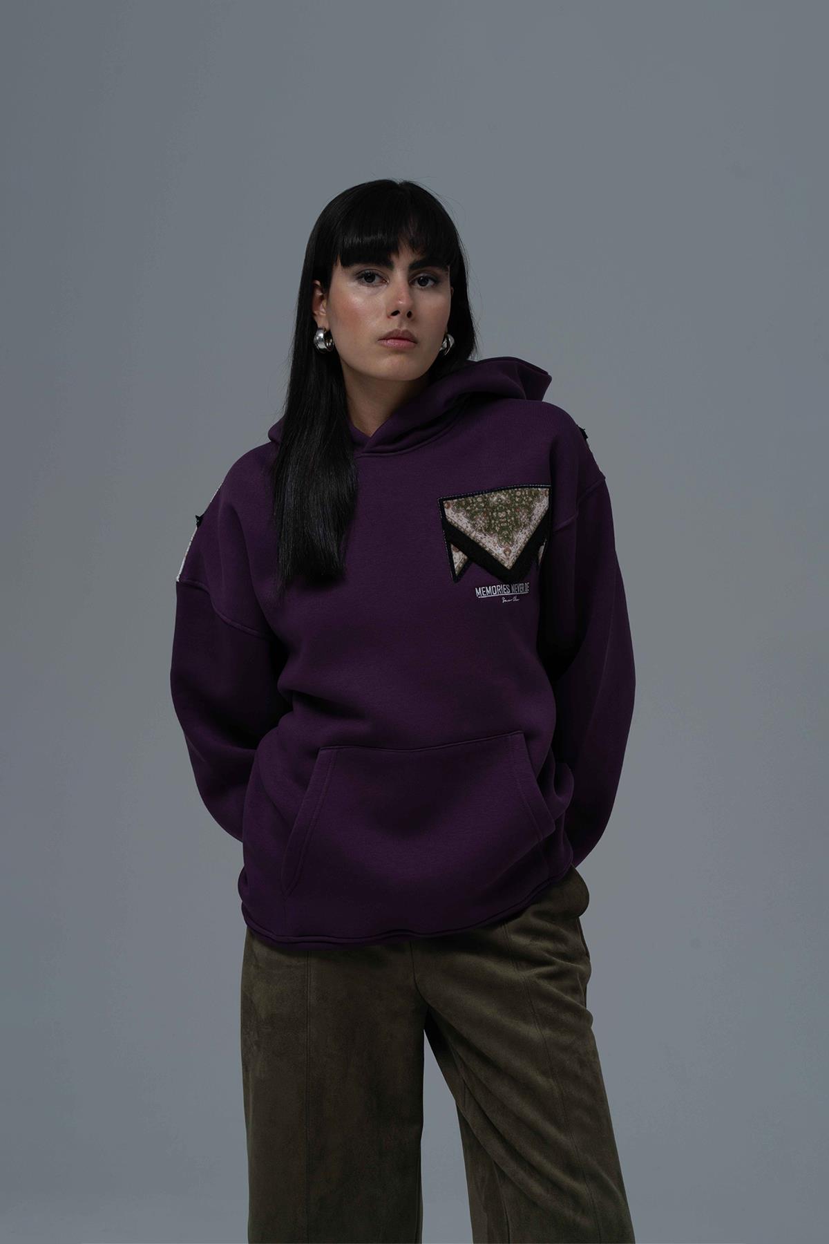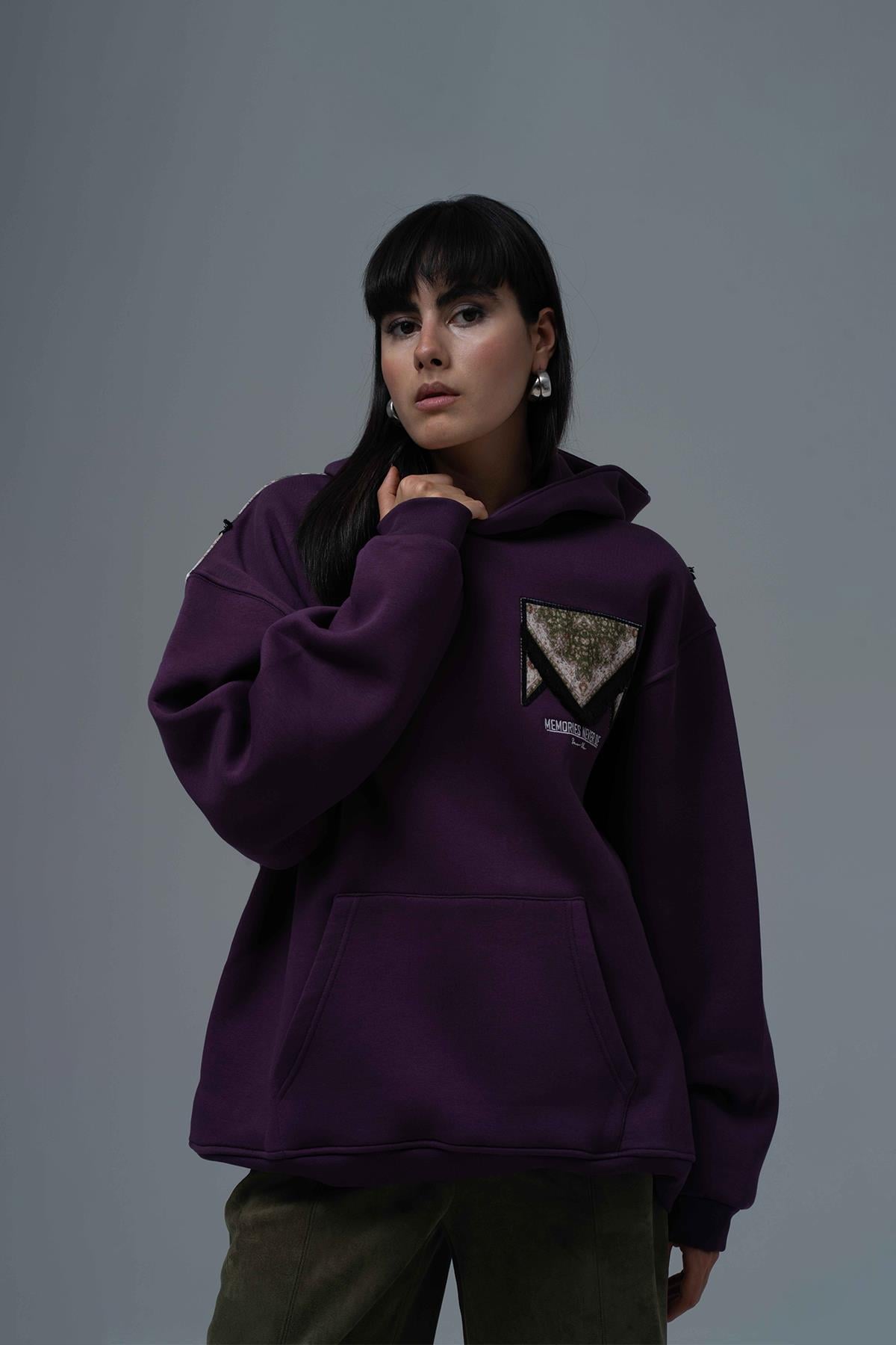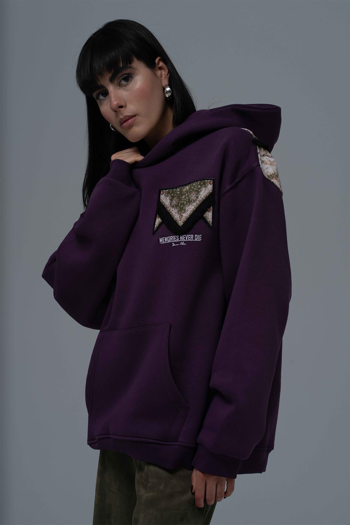 Memories Never Die Oversize Sweatshirt Kadın Mor