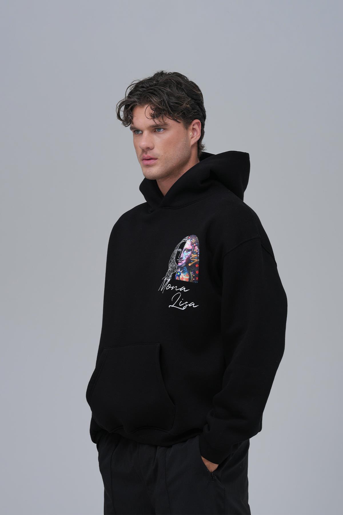 Mona Lisa Shooting Star Oversize Sweatshirt Erkek Siyah