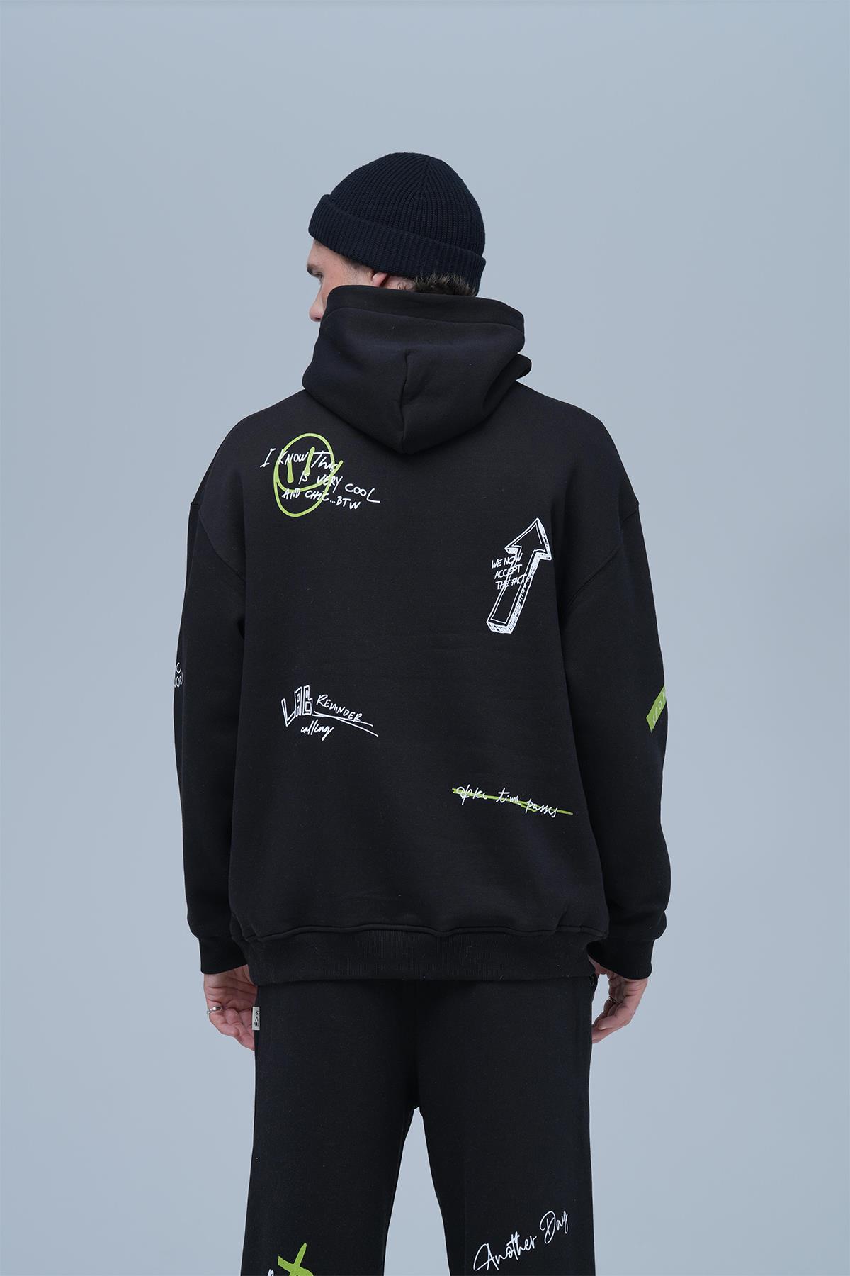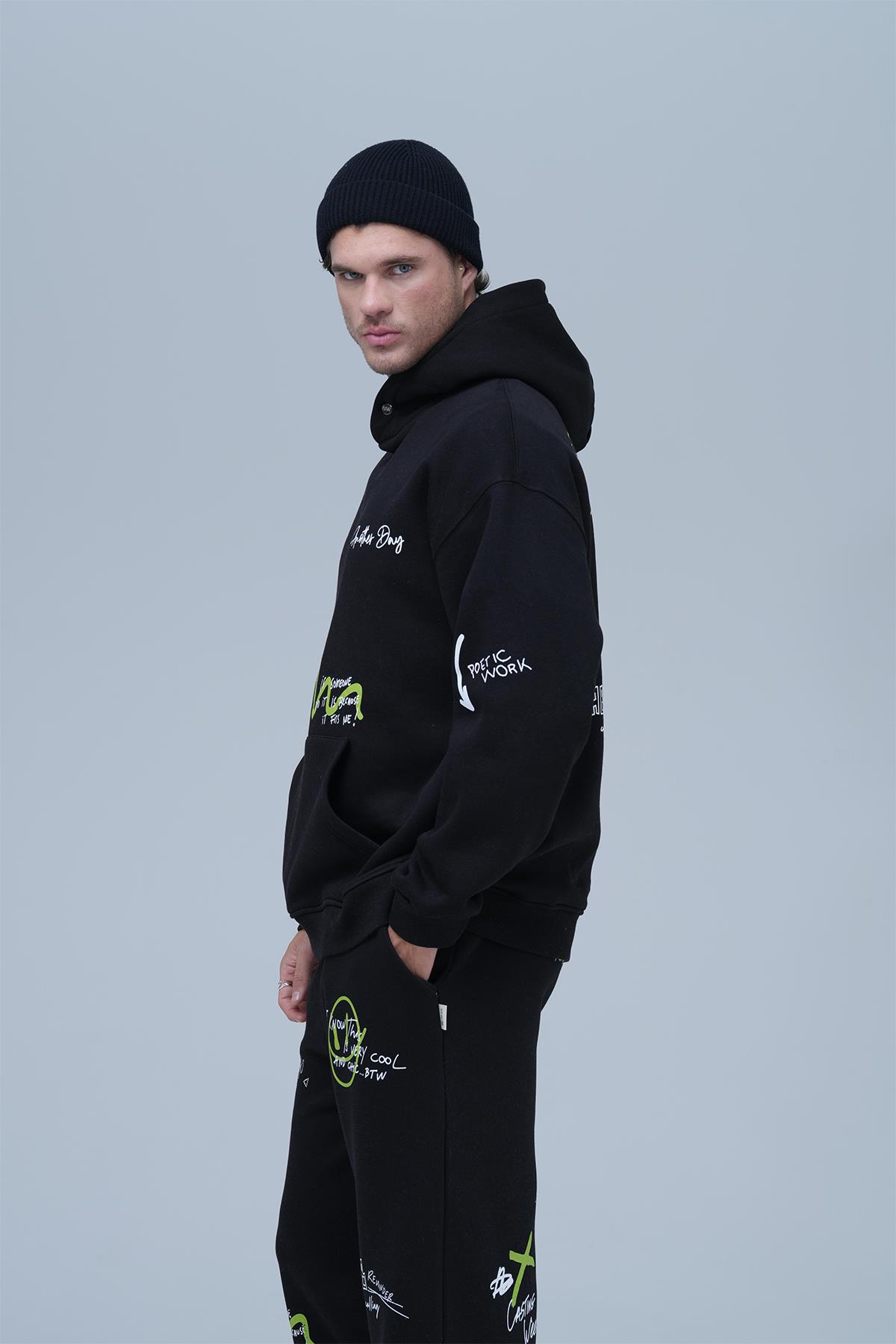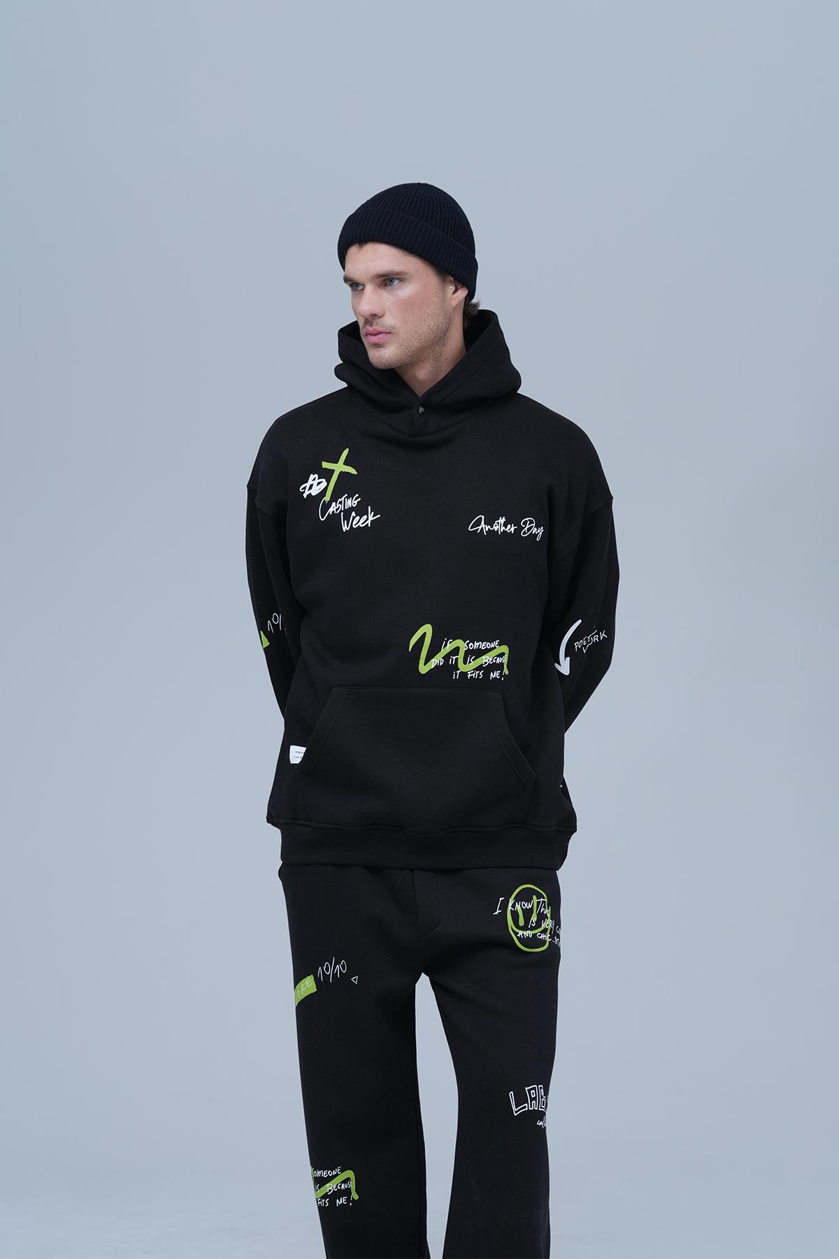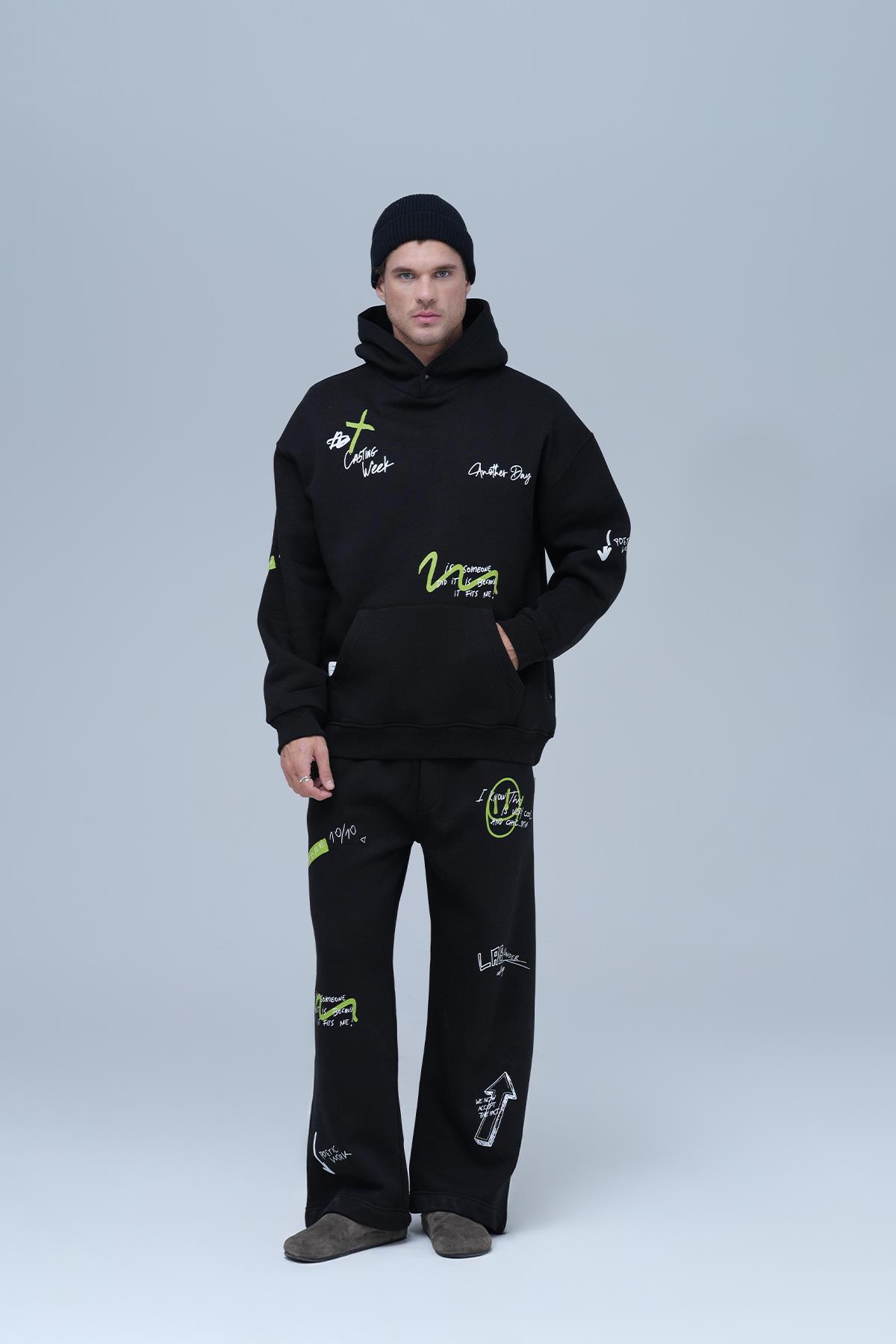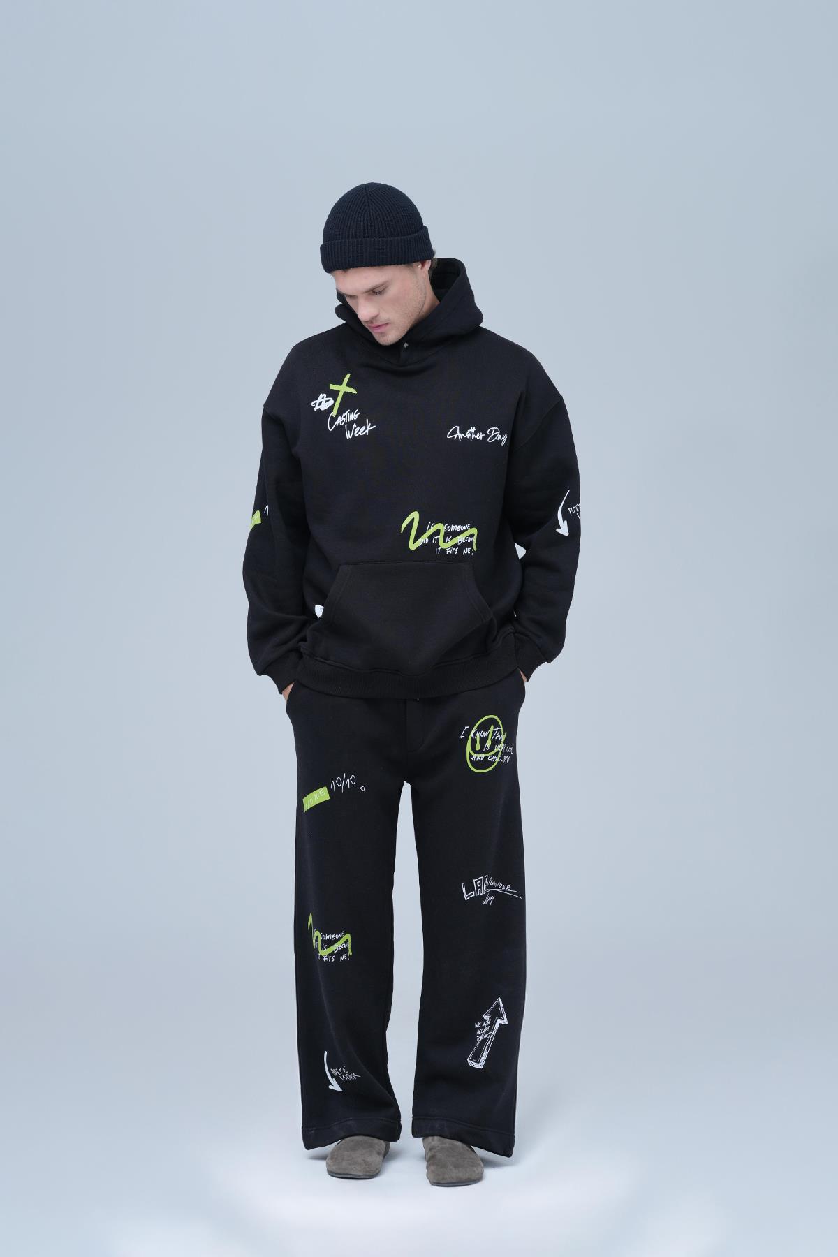 Street Script Oversize Eşofman Takımı Erkek Siyah