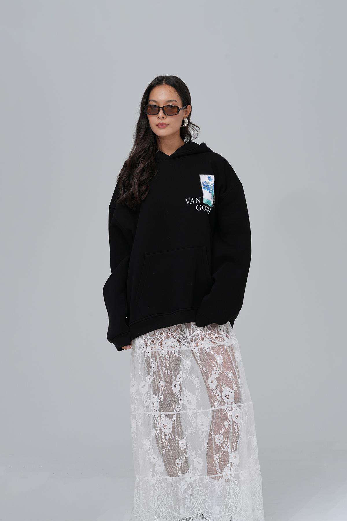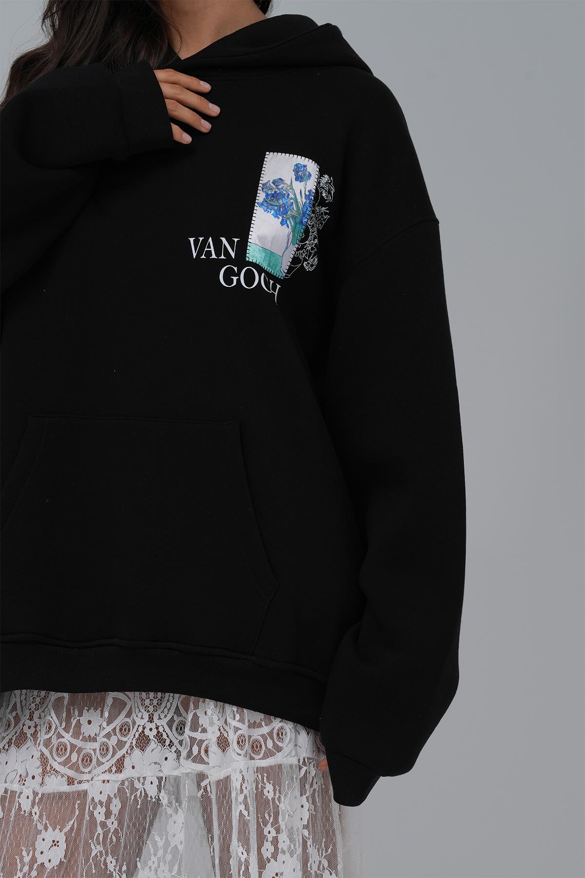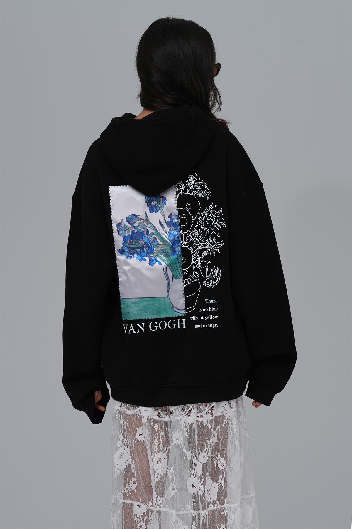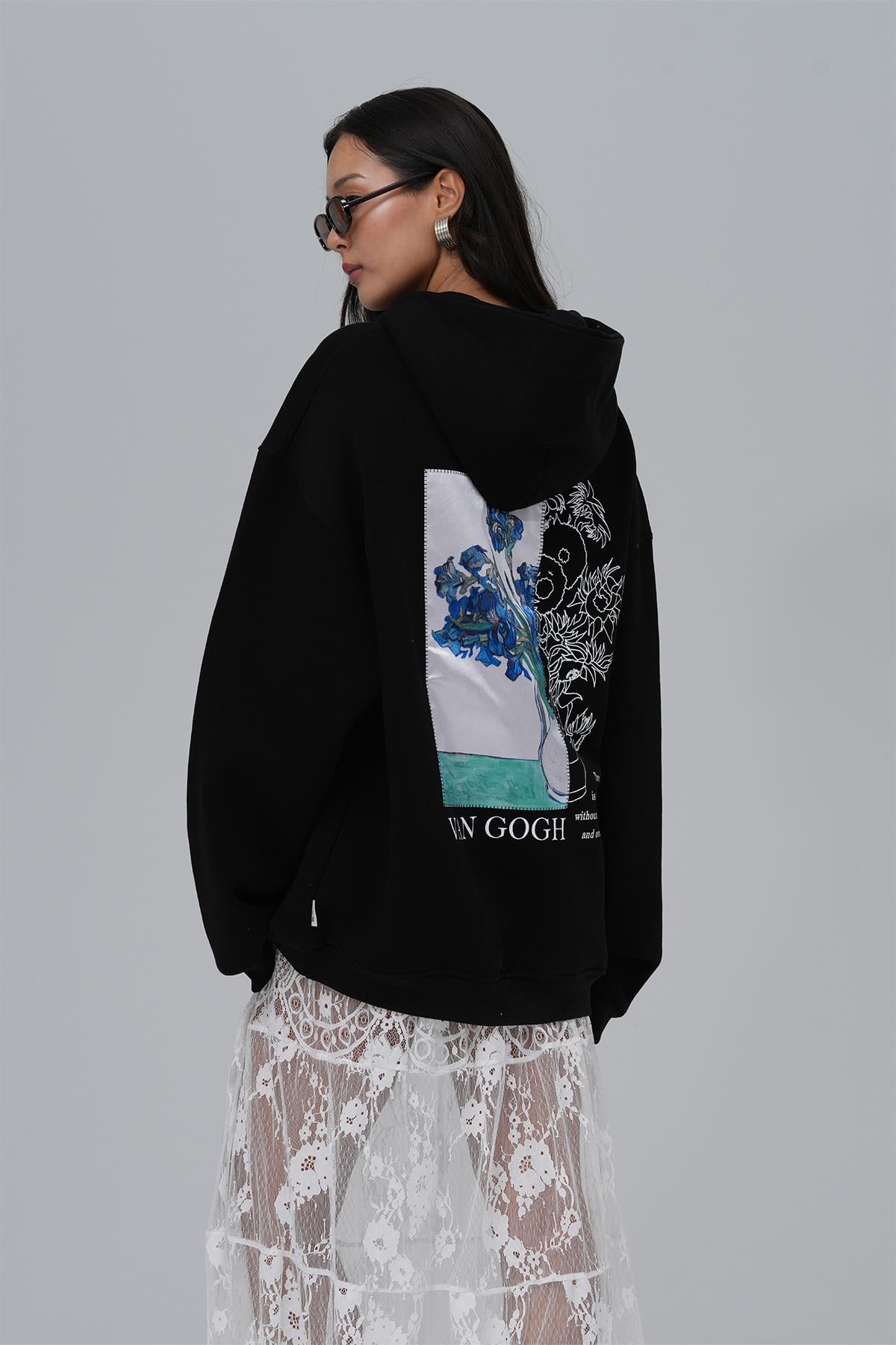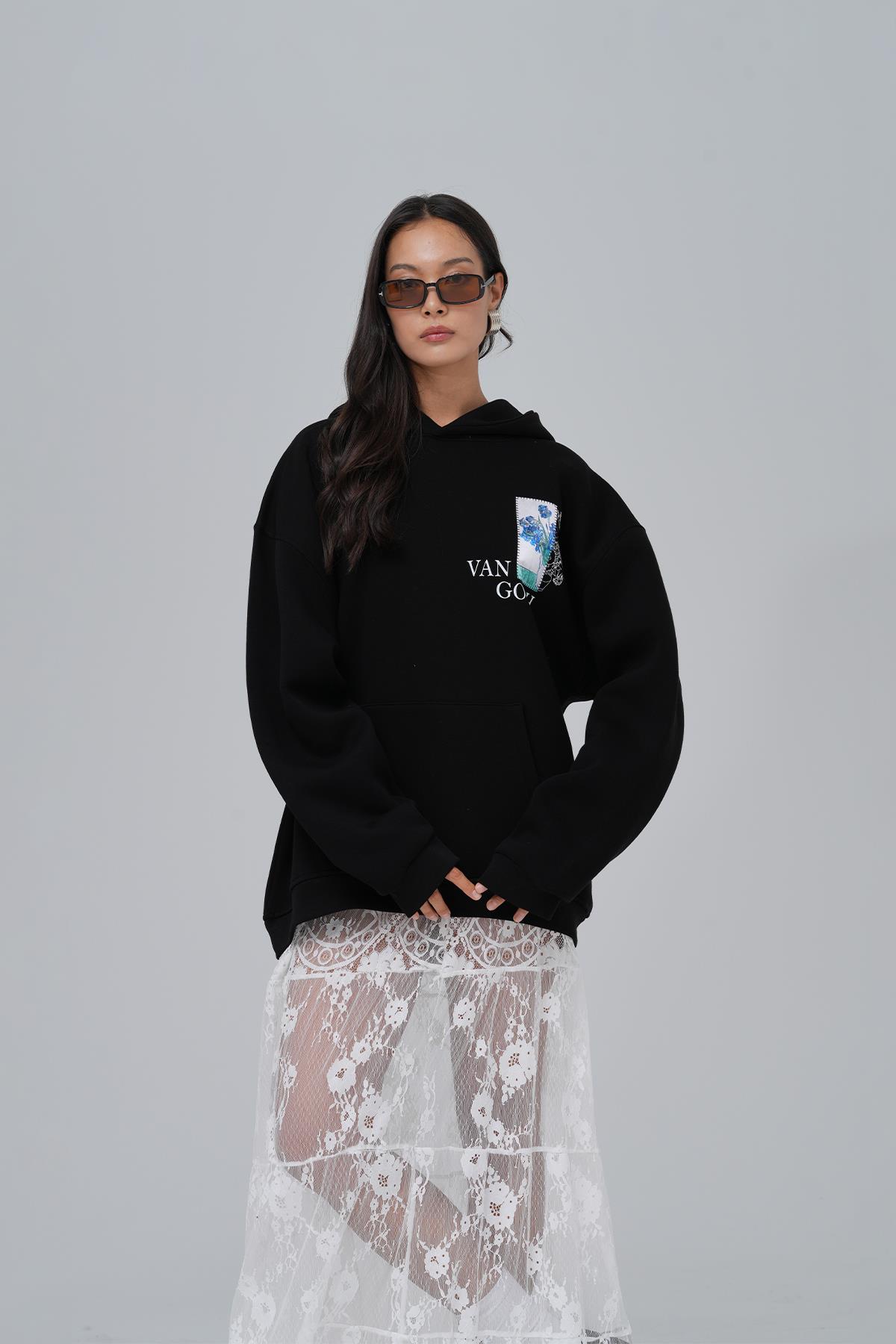 Van Gogh Irises Oversize Sweatshirt Kadın Siyah